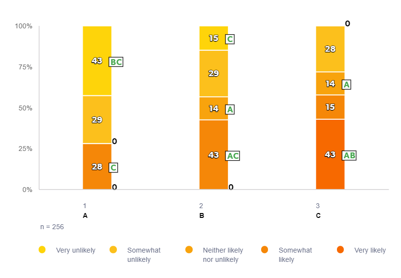 Full scale stat testing gives users the ability to compare significant differences on chart data.