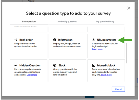 - Select URL Parameter from the list of question types.