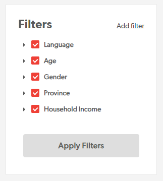 If a question within the data collection process allows for multiple selections, the filter functionality will retrieve respondents that selected all the selected filters instead of one of the selected answers.